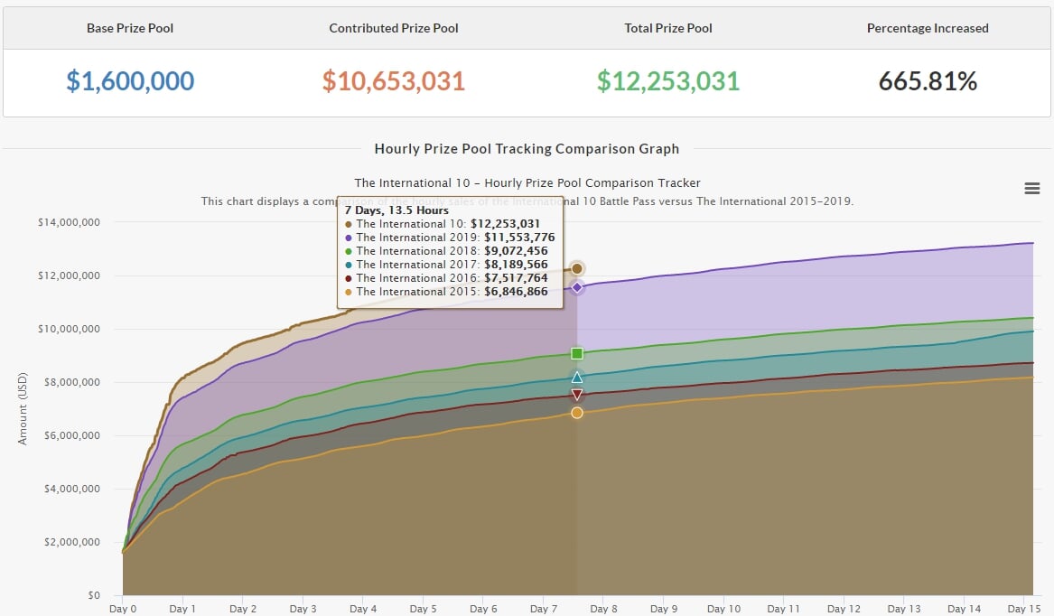 Призовой фонд The International 2020 превысил 12,2 млн долларов за семь дней и 13 часов после выхода Боевого пропуска.