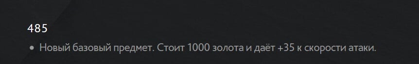 • Новый базовый предмет. Стоит 1000 золота и дает +35 к скорости атаки.