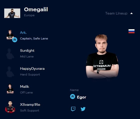 На Liquipedia в составе Omegalil числятся Sunlight, .Ark, Malik, Lil и HappyDyurara. На сайте WePlay! вместо Лила указан игрок Gambit Даниал «XSvamp1Re» Алибаев.
