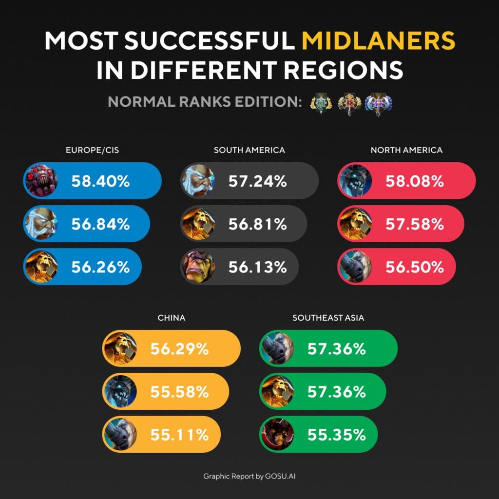 GOSU.ai опубликовал статистику побед среди героев на центральной линии на рангах «Герой», «Легенда» и «Властелин».