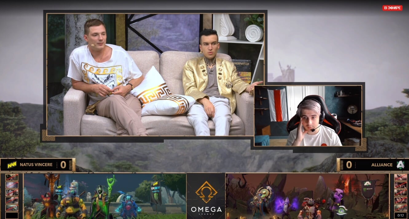Саппорт Alliance Артем «Fng» Баршак повесил на стену бело-красно-белый флаг Беларуси во время матча против NAVI на OMEGA League.