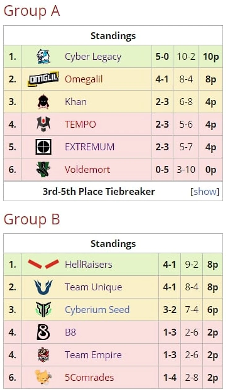 В результате переигровок из группы А в плей-офф вышла команда Khan.