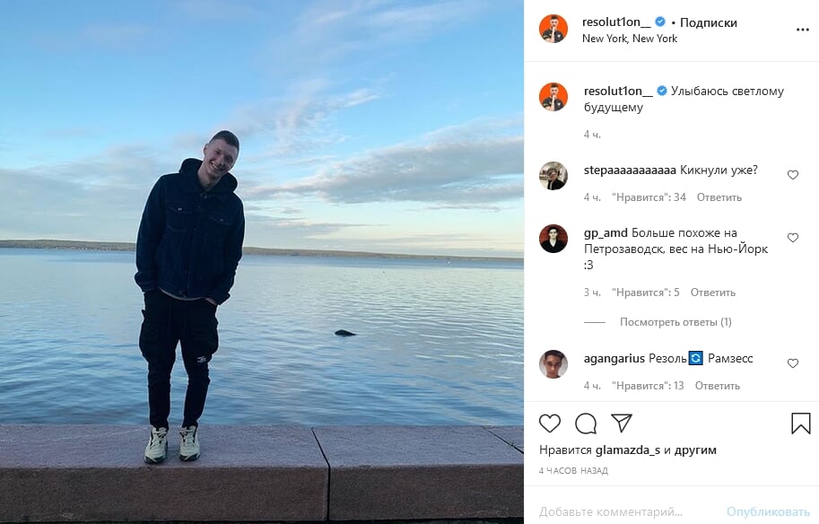 Resolut1on выложил фото с геометкой Нью-Йорка: «Улыбаюсь светлому будущему»