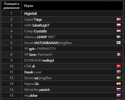 Nightfall занял первую строчку в европейском ладдере. Taiga – второй, SabeRLighT – третий