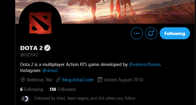 Официальный твиттер Dota 2 набрал 1 млн читателей