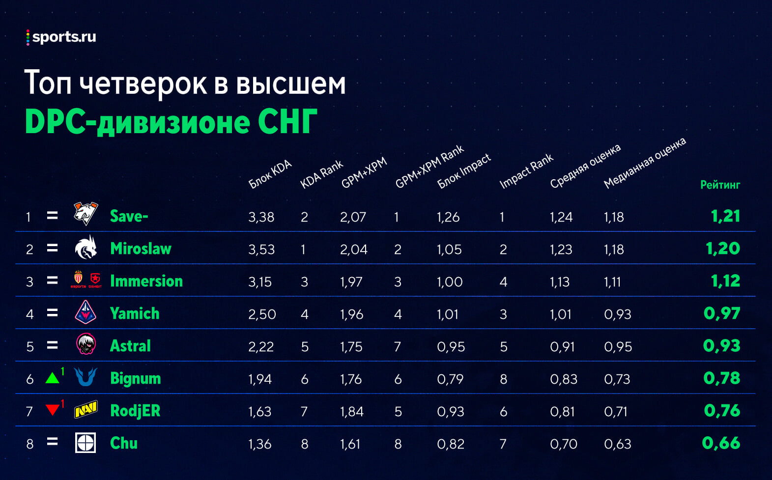 Саппорт NAVI Владимир «RodjER» Никогосян расположился на седьмой строчке рейтинга топ-четверок DPC-лиги СНГ.