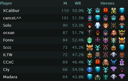 Винрейт Соло составил 53,3% – это лучший показатель среди топ-5 паберов по количеству матчей. Наибольшие число игр за последние 8 дней провел керри Team Bald Reborn Стив «Xcalibur» Йе (110 матчей, 50,9% винрейта), вторым в списке стал мидер Михай «canceL^^» Антонио (101 игра, 51,5%).