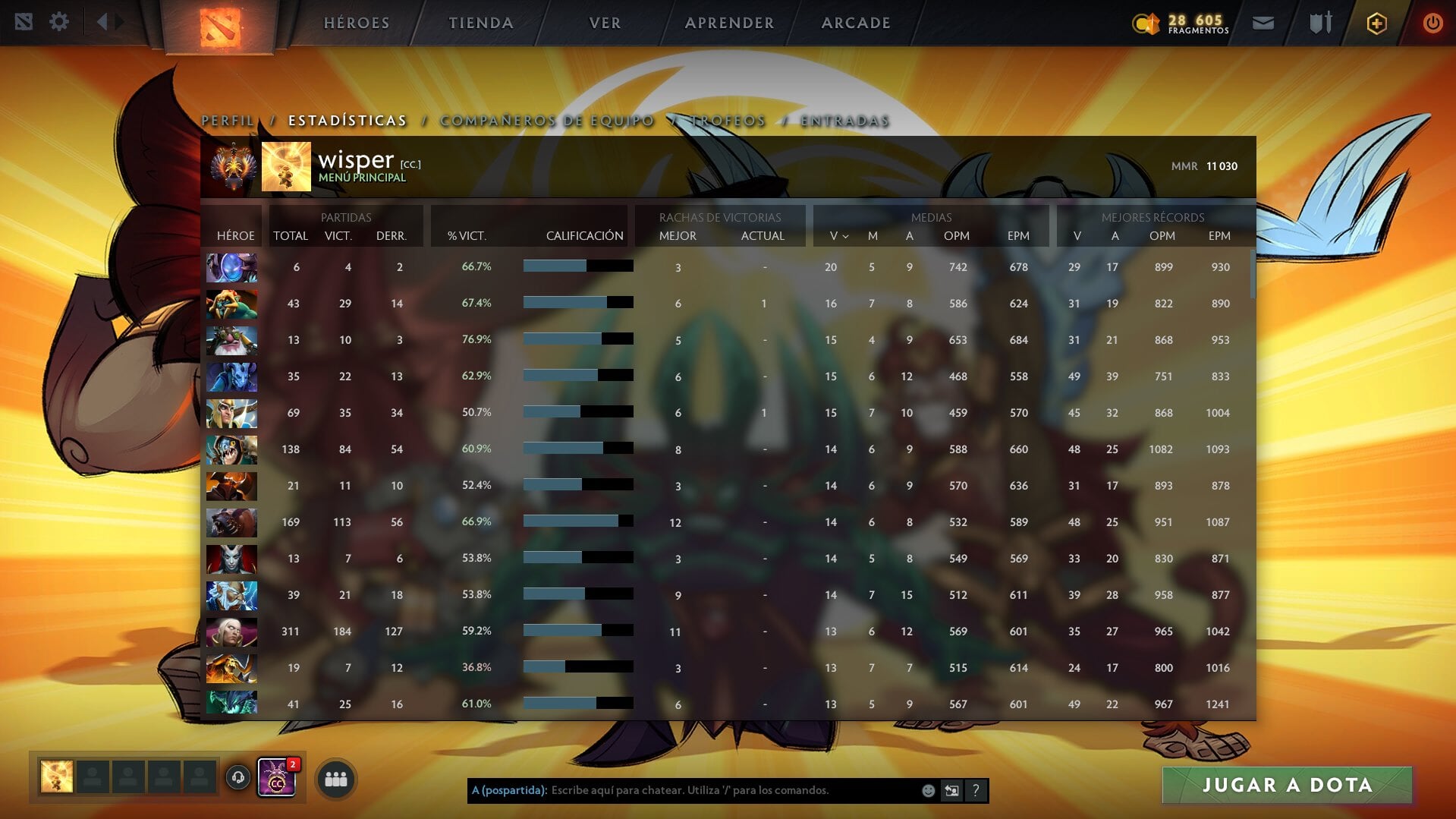 «11K. Спасибо всем за поддержку», – написал Виспер и приложил фото аккаунта. Также игрок отметил, что намерен апнуть 12 тысяч MMR.