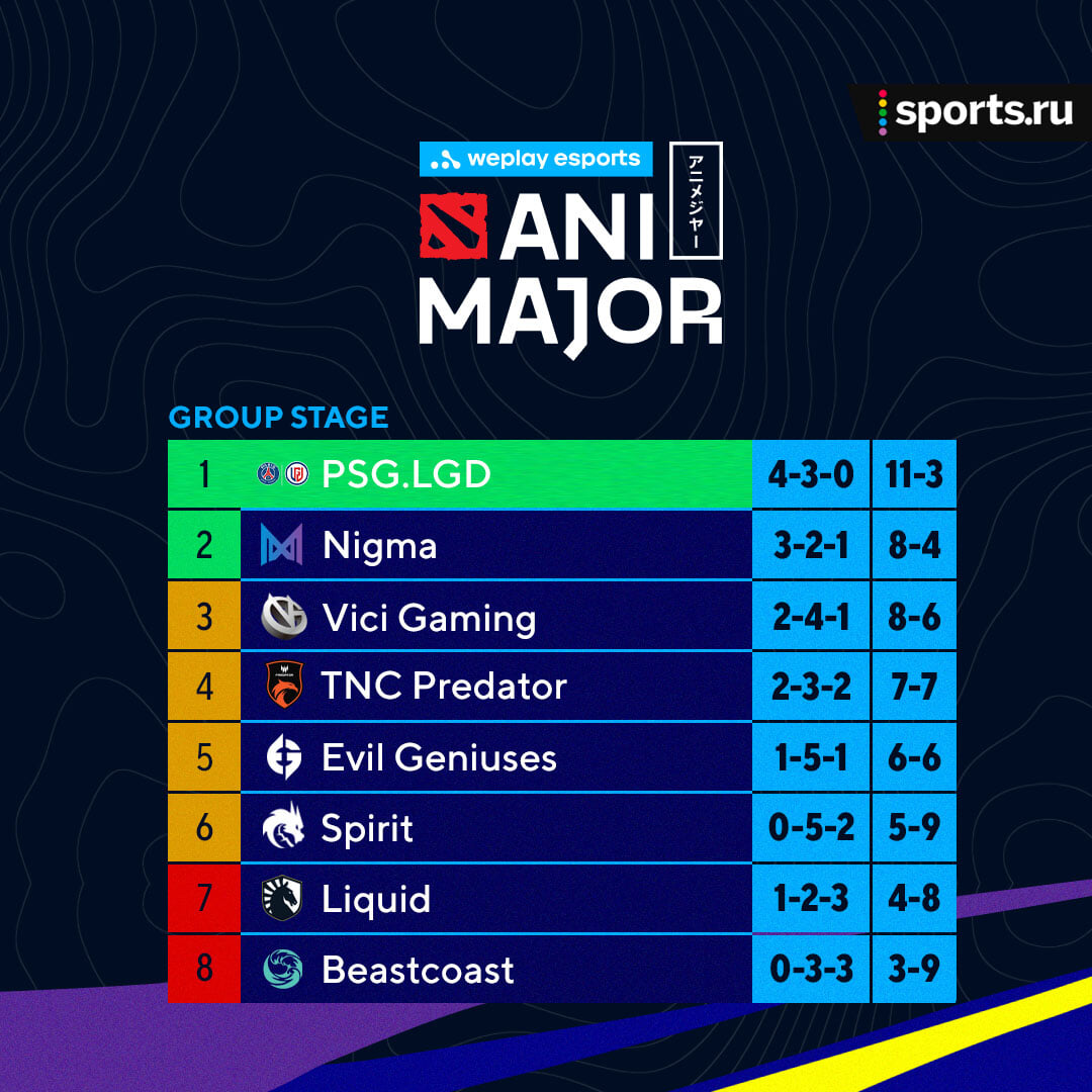 Spirit все еще сохраняет шансы пройти в плей-офф – команде остается ждать результаты серий Beastcoast – Nigma и Liquid – Evil Geniuses. Spirit напрямую пройдет в нижнюю сетку плей-офф, если Liquid проиграет свою серию, а Beastcoast не сможет победить Нигму.