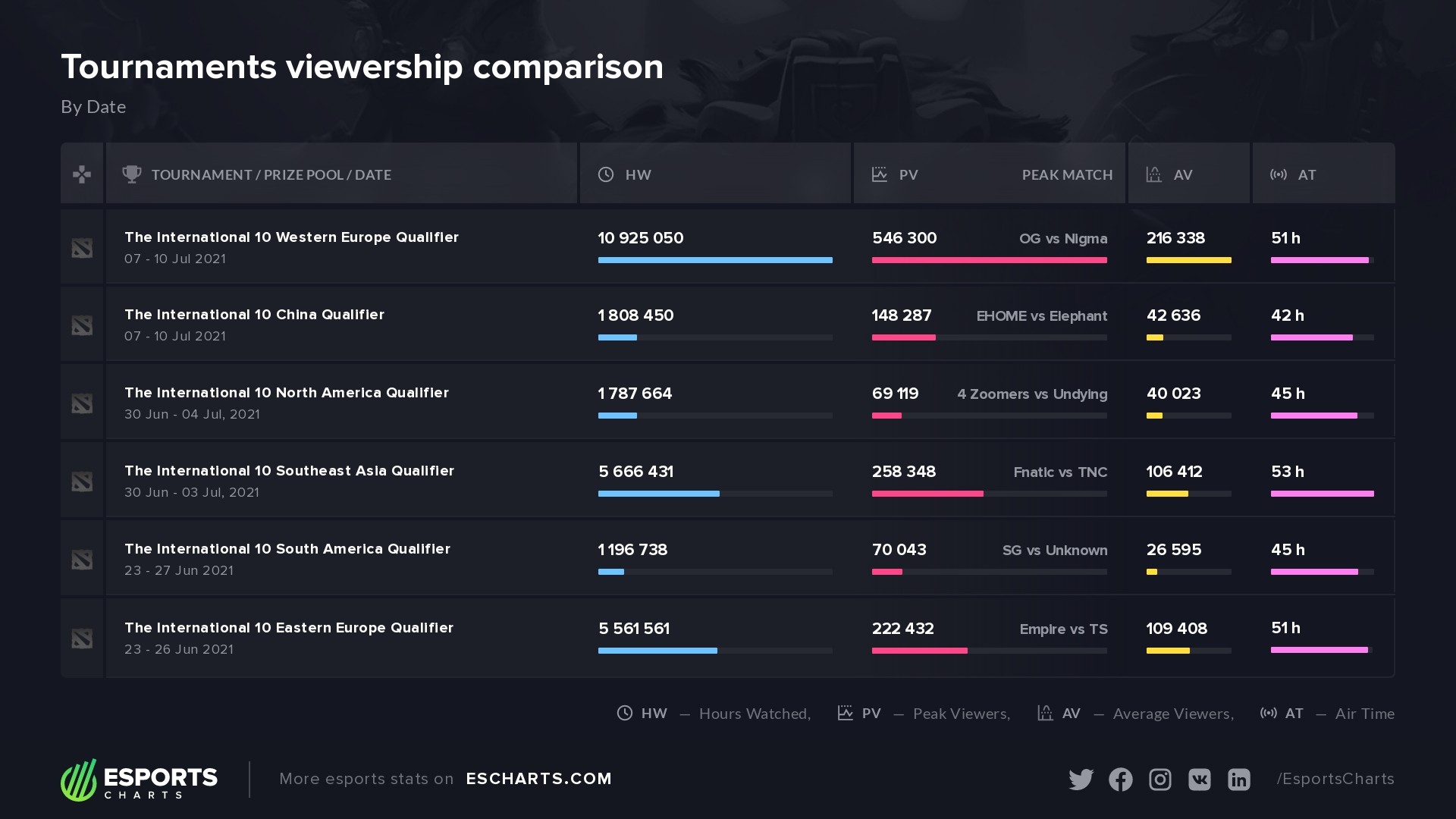 Esports Charts подготовили статистику по квалификациям на The International 10.