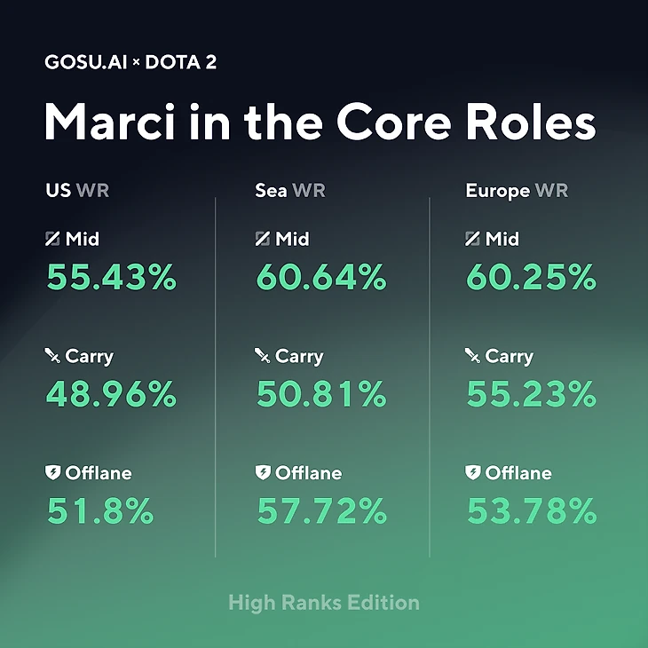 Процент побед на мидовой Marci в Европе – 60%.