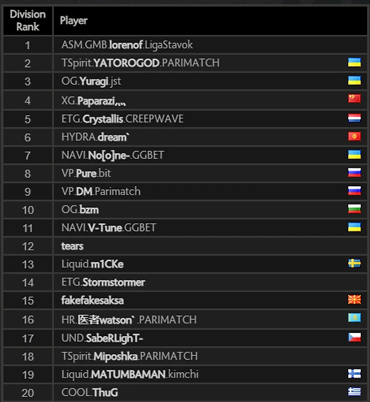 Мидер Monaco Gambit Артем «Lorenof» Мельник возглавил европейскую таблицу лидеров.