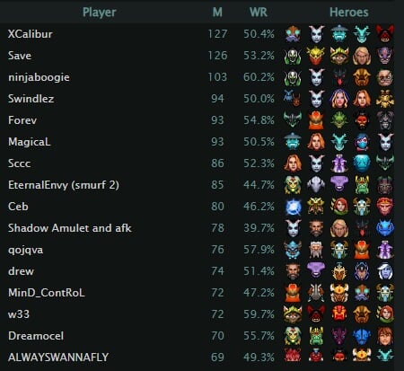 Больше пабликов, чем Сэйв, сыграл только мидер Bald Стив «Xcalibur» Йе (127 матчей, доля побед 50,4%).