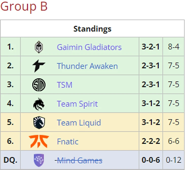 Группа Б: Fnatic, Gladiators, Mind Games, Liquid, Spirit, Thunder Awaken, TSM.