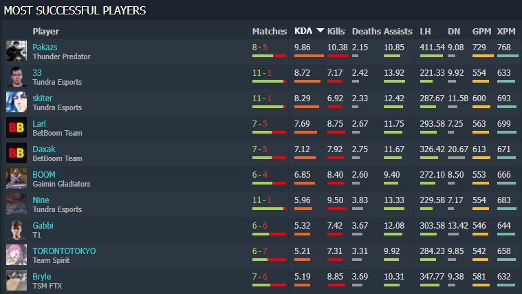 • Керри Thunder Awaken – лидер по KDA в группах мейджора в Стокгольме. Larl, Daxak и Torontotokyo – в топ-10