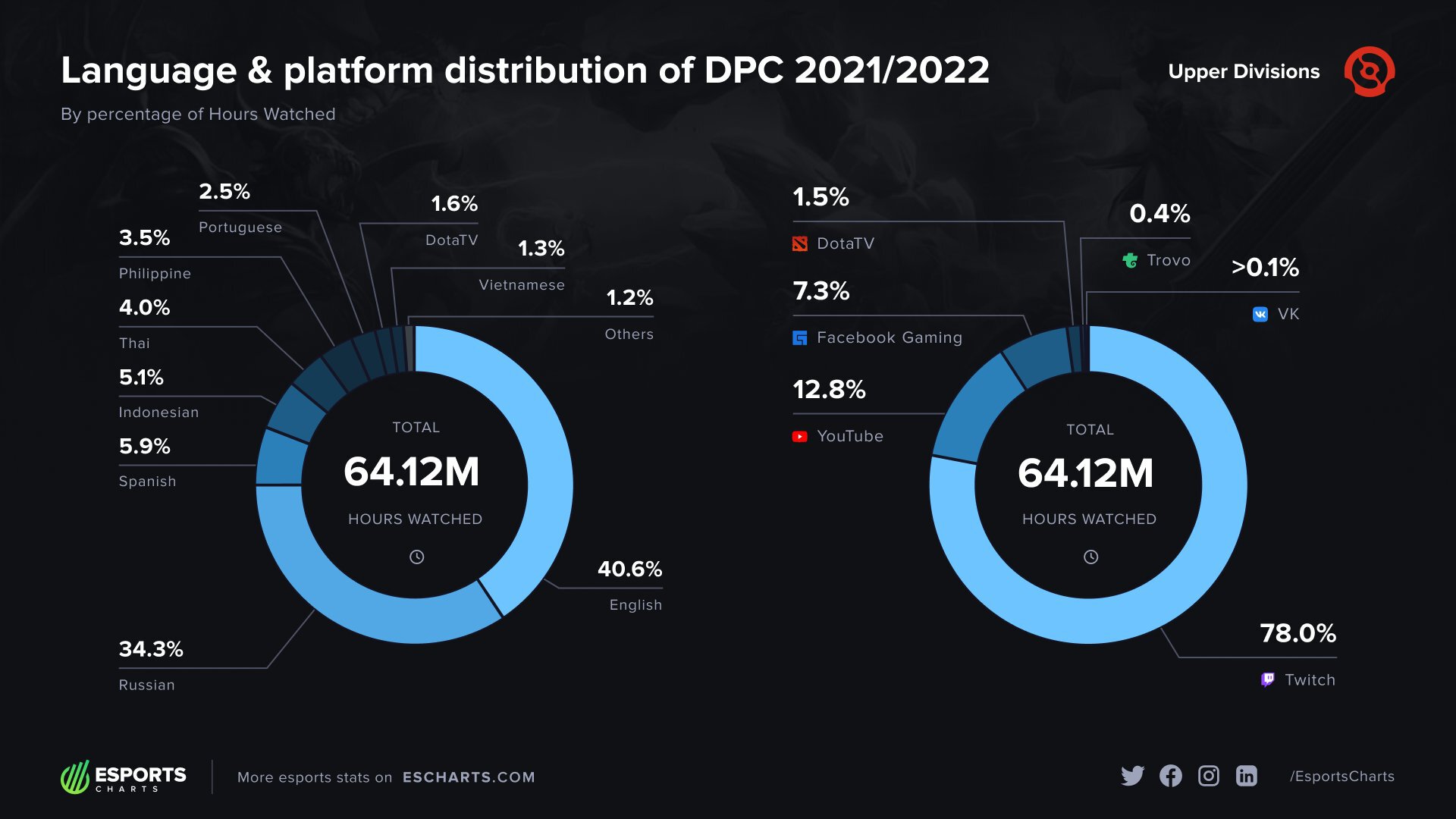 Русский – второй по популярности язык трансляций Dota Pro Circuit, английский – на 1-м месте