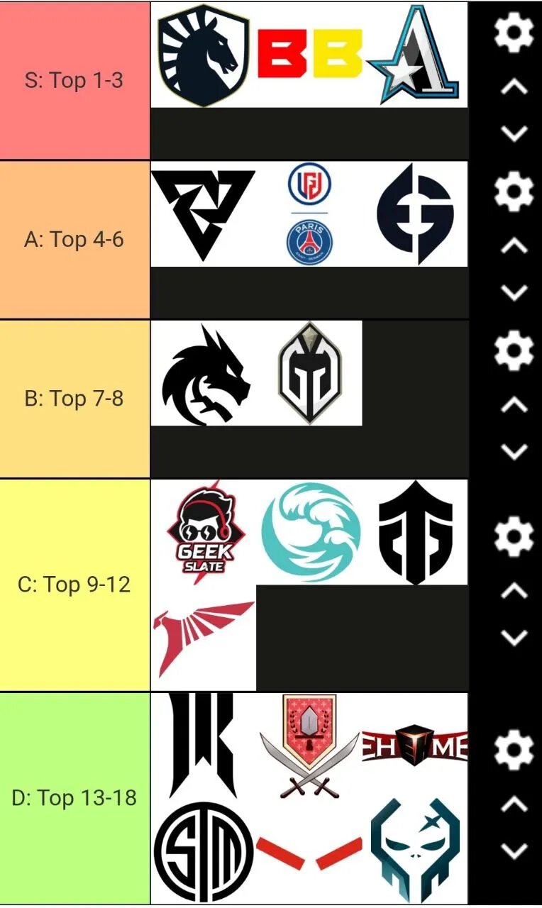 В тир-2 (топ-6) игрок поместил Tundra, PSG.LGD и Evil Geniuses. Spirit расположилась в тир-3, а HellRaisers – в тир-5.