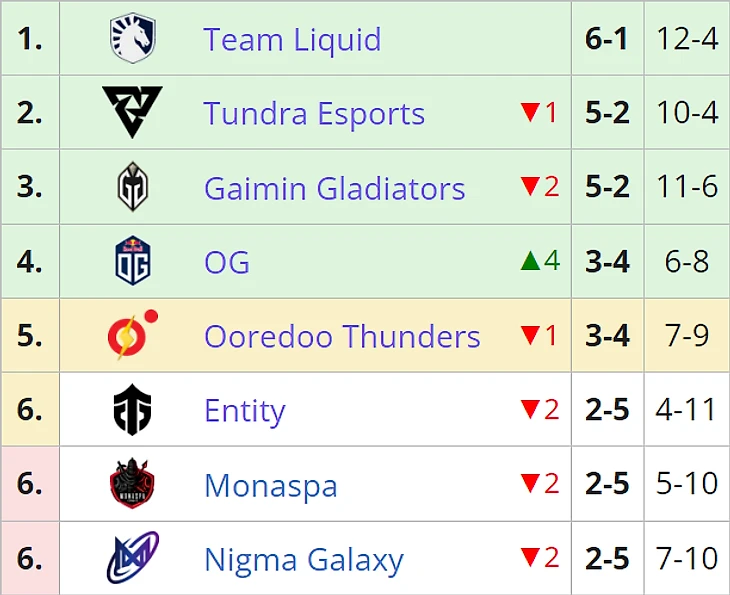 Участники DPC-лиги Западной Европы: Liquid, Gladiators, Tundra, Entity, OG, Nigma, Ooredoo Thunders, Monaspa.