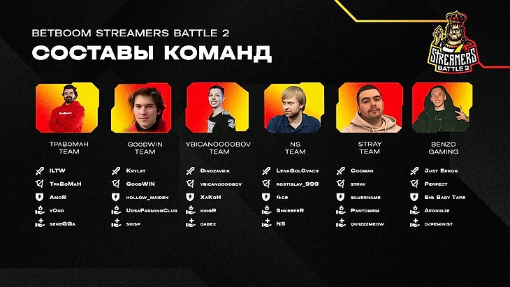 Стали известны составы команд на BetBoom Streamers Battle 2.
