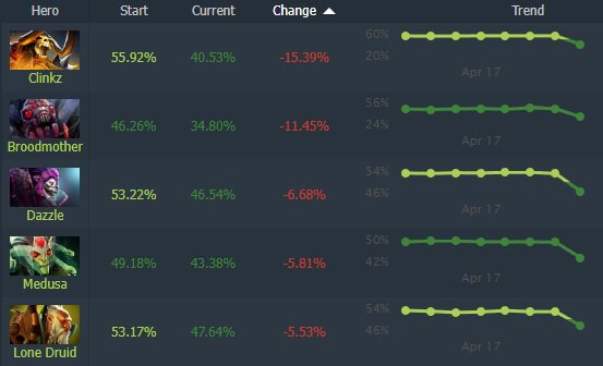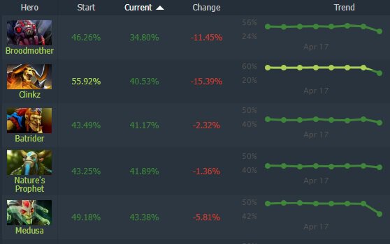 Clinkz – винрейт 40.53%% (был 55.92%).