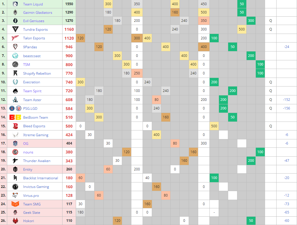 Гарантированный инвайт на TI также заработала Liquid с 1550 DPC-очками.