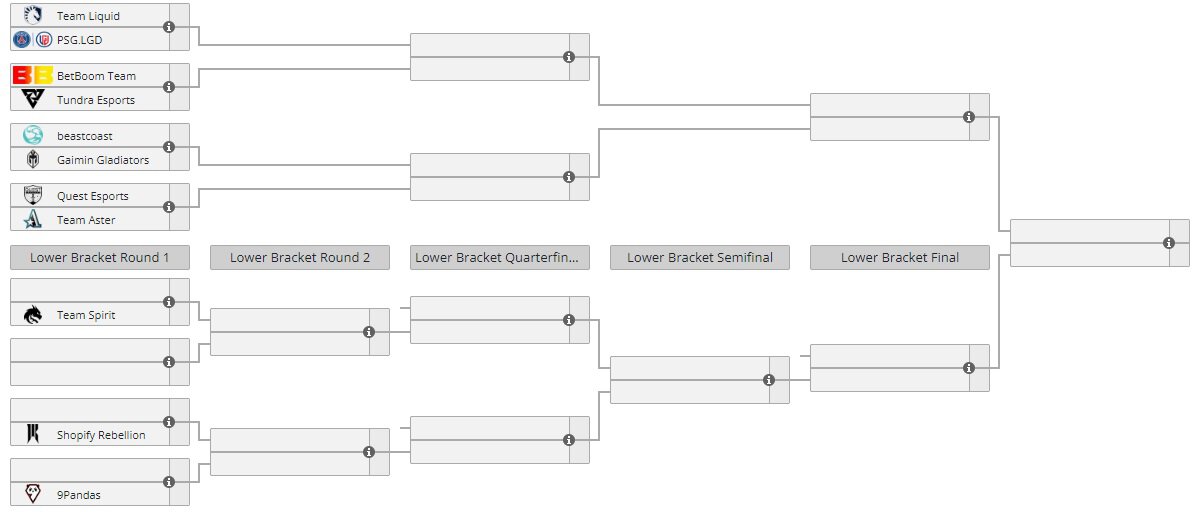 BetBoom в верхней сетке встретится с Tundra, Quest – с Aster, Liquid – с PSG.LGD, а Beastcoast – с Gladiators.