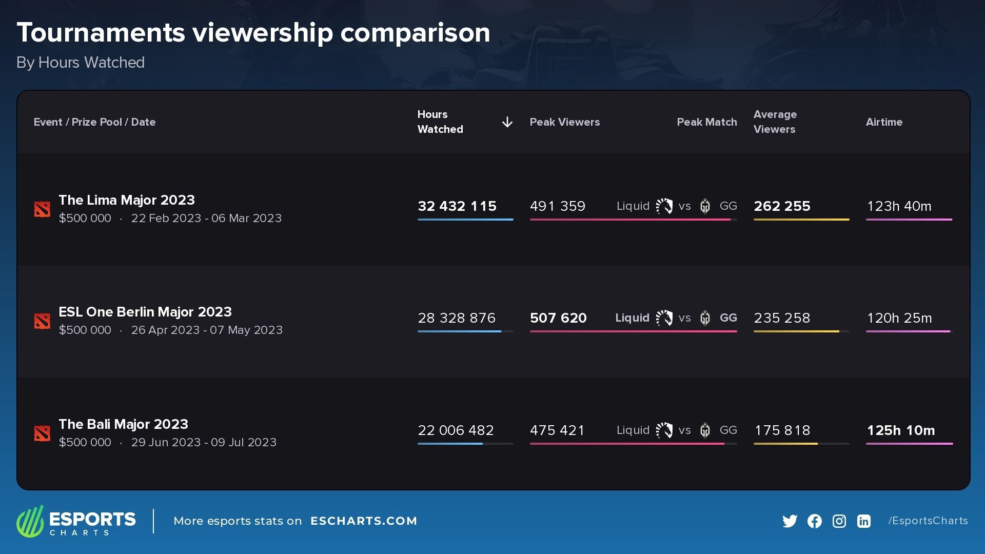 Самым популярным матчем чемпионата стал гранд-финал между Gladiators и Liquid, завершившийся со счетом 3:1. По словам Esports Charts, причинами понижения интереса к турниру стали неудобный часовой пояс для зрителей и Европы, а также перенасыщенность турнирами.
