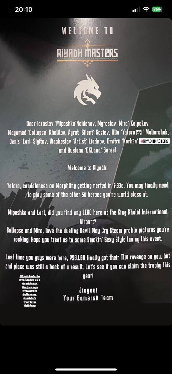 В нем организаторы турнира поприветствовали команду, обратив внимание Yatoro на нерф Морфлинга.