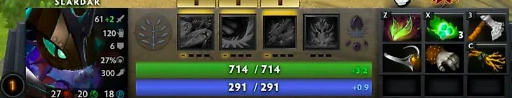 Slardar – первый по станам за игру и третий по забранным Рошанам с командой, второй показатель особенно важен, так как команда, контролирующая Рошана и имеющая возможность быстро его забрать, чаще побеждает!