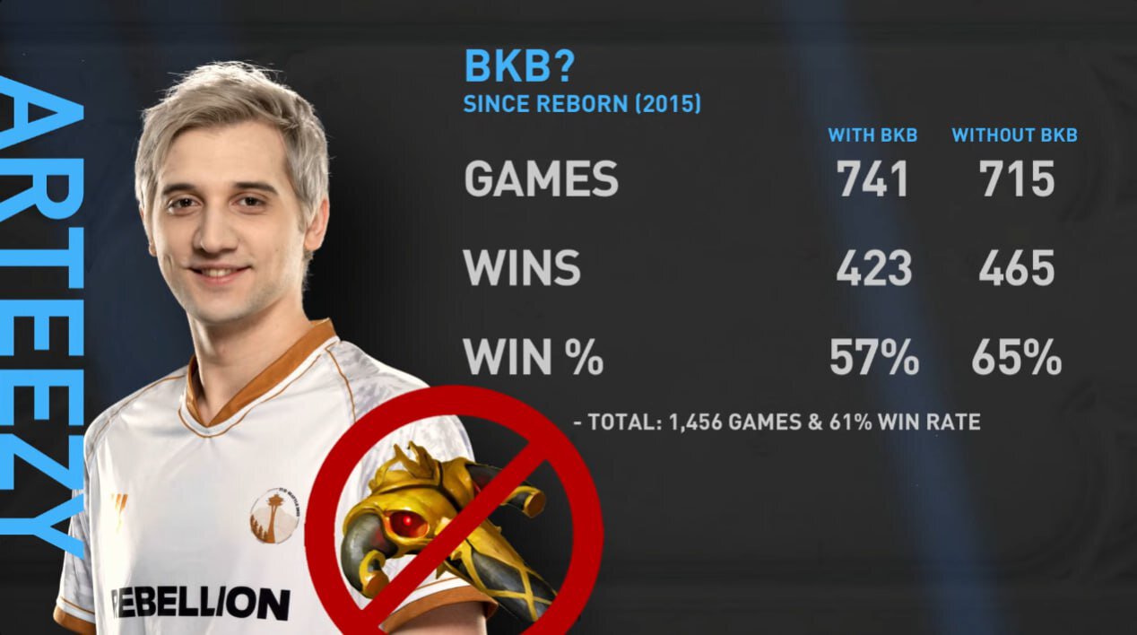 Arteezy провел 715 матчей из 1456 без BKB на про-сцене. Винрейт игрока с предметом – 57, без – 65