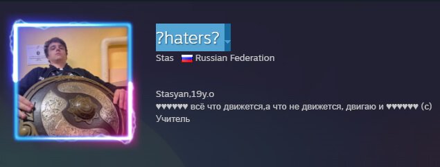 Malr1ne поставил ник «?haters?» и фотографию Ларла с Аегисом.