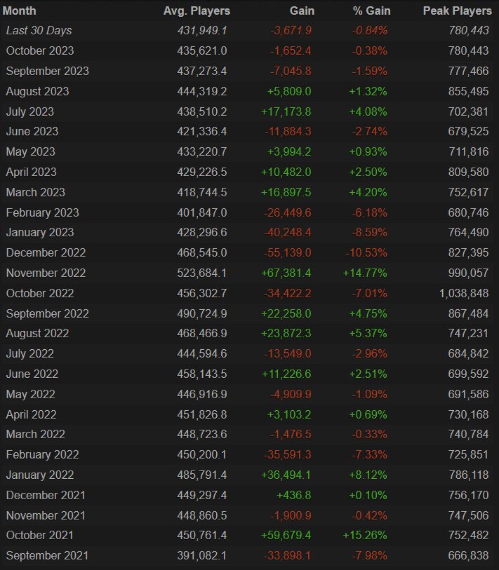 Однако средний онлайн упал с 437 до 435 тысячи геймеров.