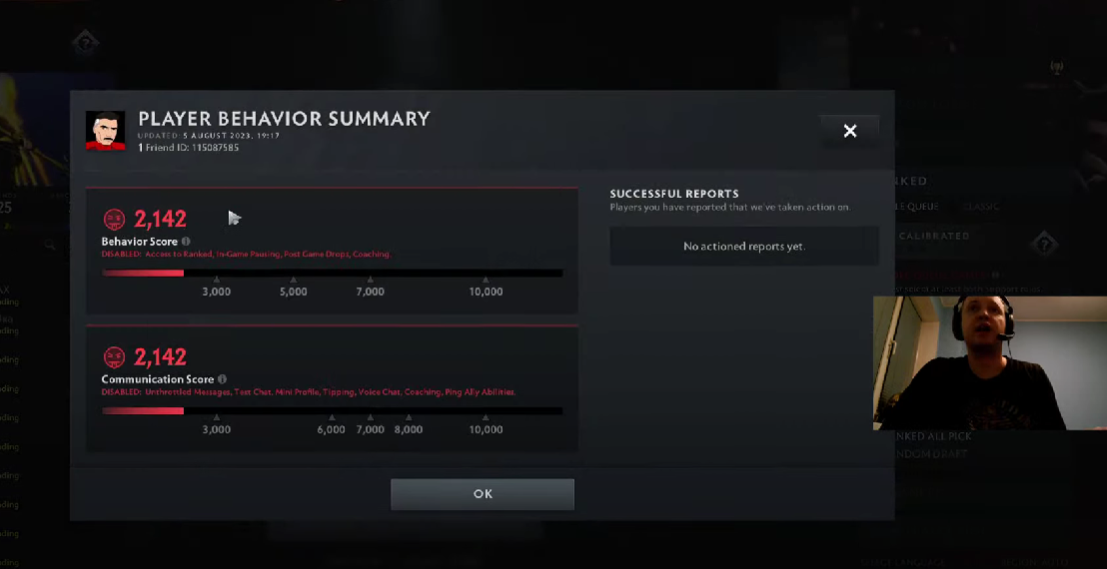 Папичу заблокировали рейтинговый матчмейкинг в Доте. Его порядочность упала до 2 тысяч
