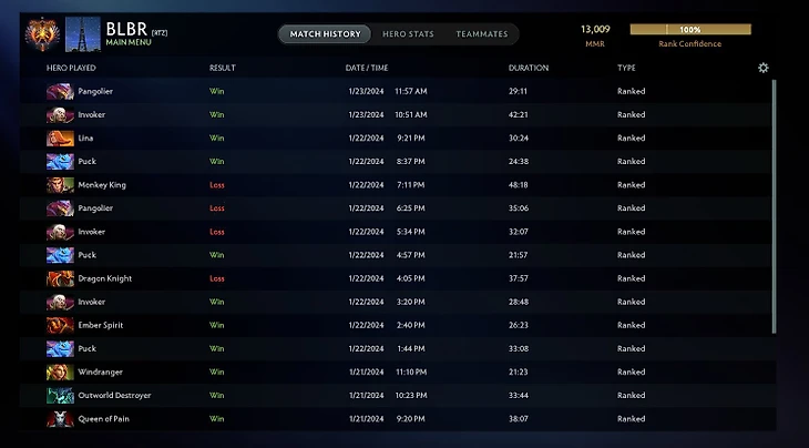 Quinn апнул 13 тысяч MMR. Он сыграл 50 игр в матчмейкинге с винрейтом 70 за последние 8 дней