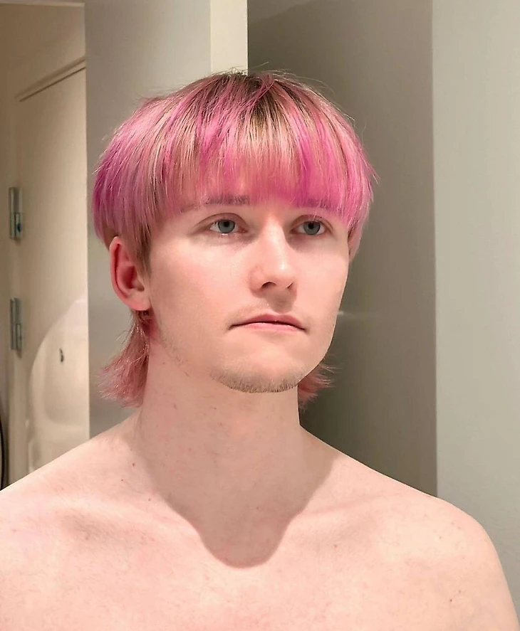 Ace покрасил волосы в розовый цвет.