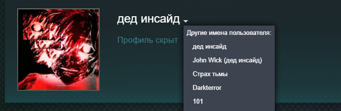 Перед этим экс-киберспортсмен ставил ники «Страх тьмы» и «John Wick (дед инсайд)».
