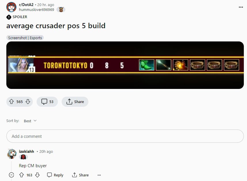 На Reddit высмеяли с билда Torontotokyo на Crystal Maiden.