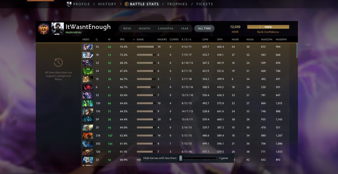 Miero сыграл 26 игр в матчмейкинге за 8 дней с винрейтом 66,7.