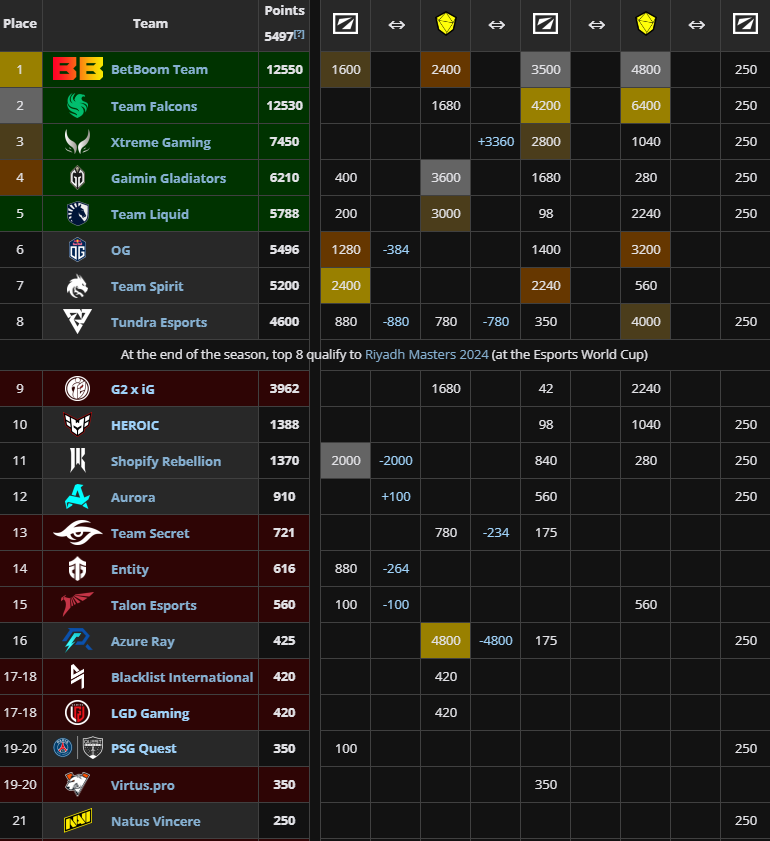 BetBoom Team заняла на чемпионате второе место, заработав 175 тысяч долларов и 4800 очков EPT. Команда из Восточной Европы остается лидером по очкам – 12530 (на 20 больше, чем у Falcons).