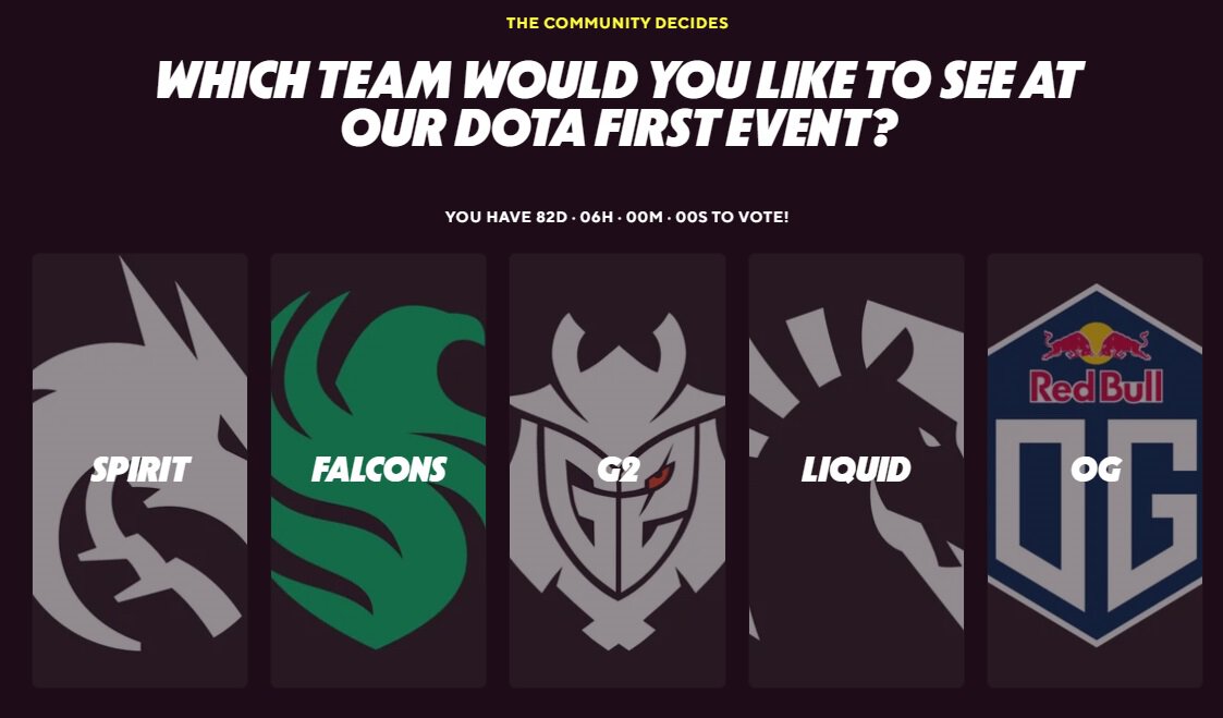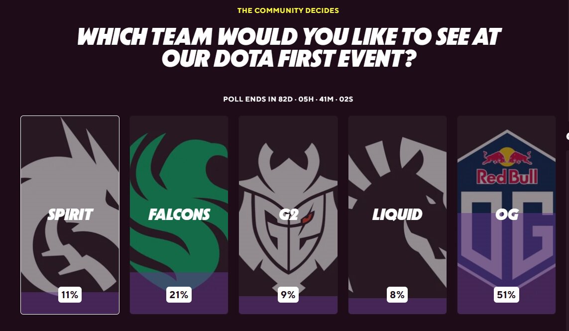 «Какую команды вы хотели бы видеть на нашем первом турнире по Доте?» – гласит название голосования.
