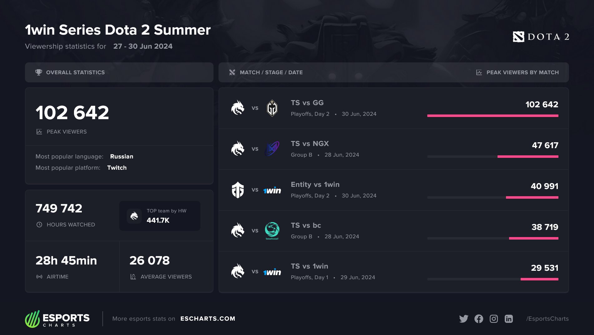Появилась статистика по просмотрам 1win Series Dota 2 Summer.