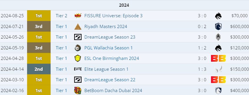 До этого команда всегда финишировала в топ-3 на всех турнирах в этом году