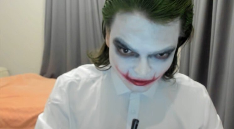 Ростик сделал косплей на Джокера в честь Хэллоуина.