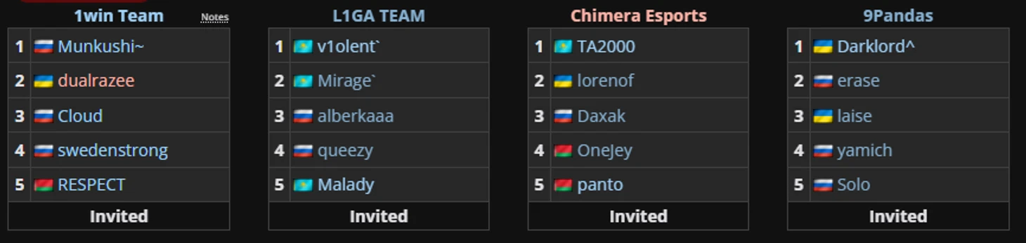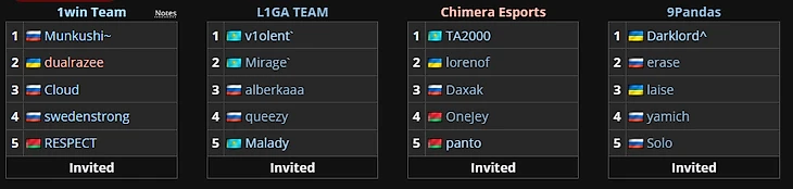 Участники: 1win, L1ga, Chimera, 9Pandas.