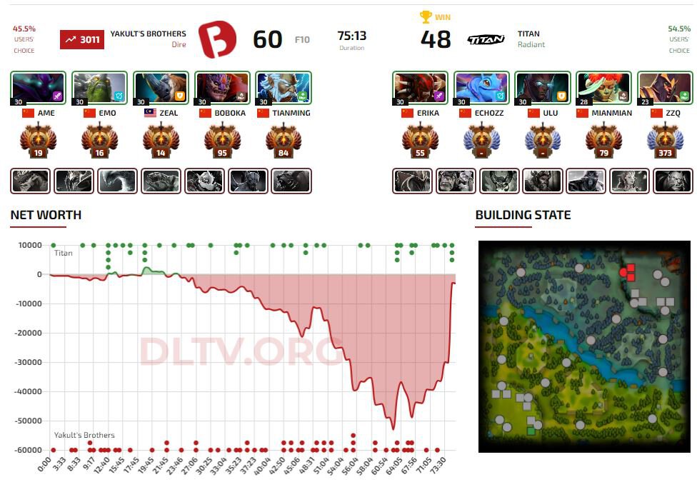 На первой карте серии против Titan Yakult’s Brothers вели 52 тысячи золота к 61-й минуте, но не смогли дожать оппонента.