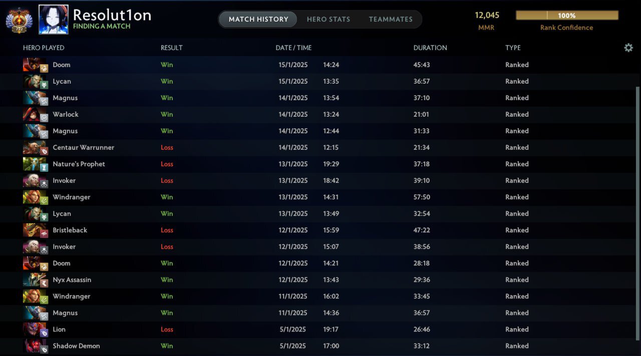 Resolut1on достиг 12 тысяч MMR: «Мутим лигу + апаем MMR, чтобы не говорили, что создал лигу, чтобы не быть тысячником»