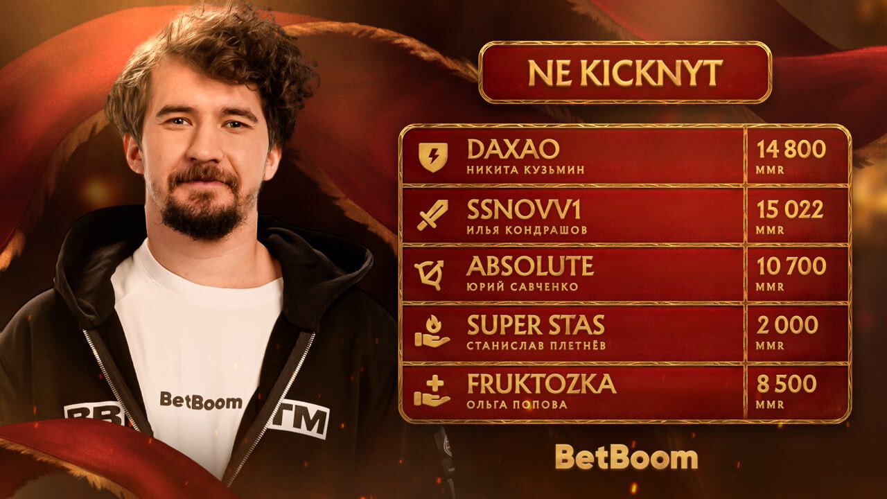 Daxak, Fruktozka и Super Stas с 2 тысячами MMR сыграют в команде Ne kicknyt на BetBoom Streamers Battle 9