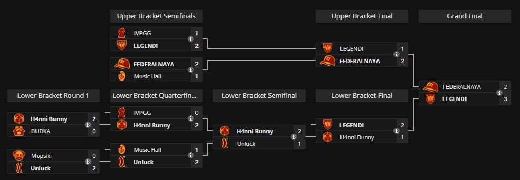 22:00 Legendi W:FF Depressed Kids / Depressed Kids отказались играть последний матч турнира в связи с пропажей интернета у капитана команды