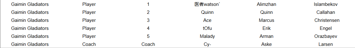 Состав Gladiators на DL25: Watson, Quinn, Ace, Tofu, Malady, Cy (тренер).