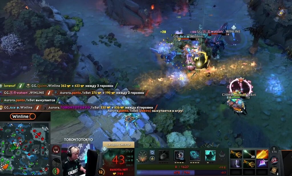 Оффлейнер Aurora взял 12-й уровень, затем умер, а затем, находясь в таверне, прокачал ульт сразу до 2-го уровня.